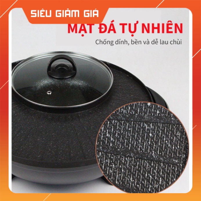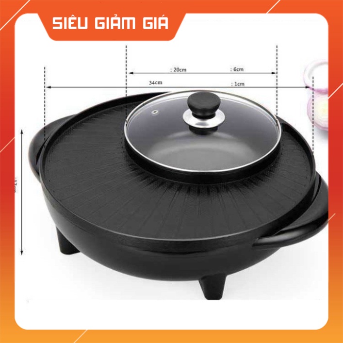 Bếp lẩu nướng điện đa năng công nghệ Hàn Quốc- Nồi lẩu nướng 2 ngăn lẩu trong nướng ngoài tiện lợi - Bảo hàng 6 tháng