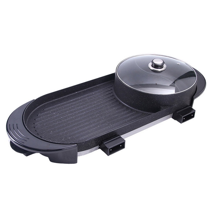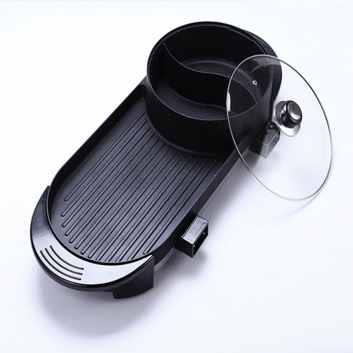 Bếp lẩu nướng điện đa năng kết hợp 2 trong 1 chống dính, công suất 2200W, Electric Grill with Hot Pot