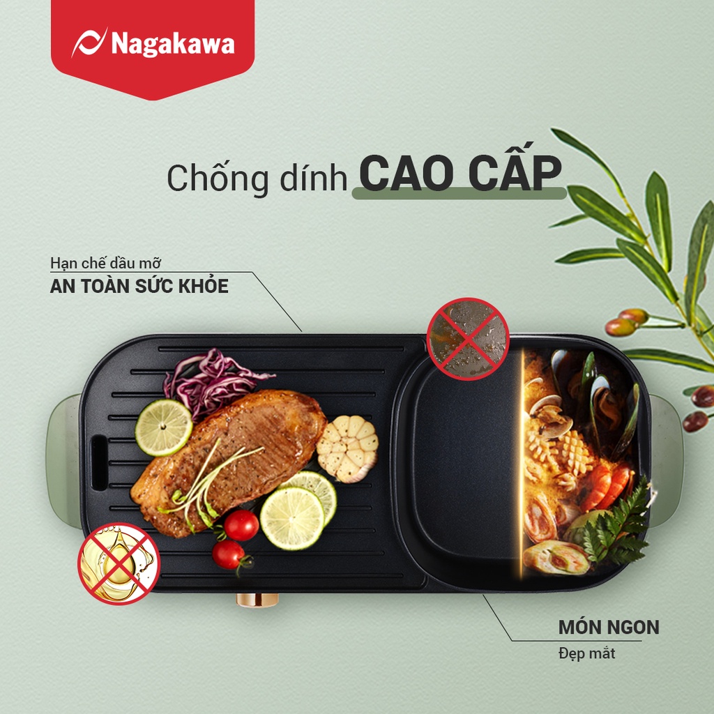 Bếp lẩu nướng điện đa năng Nagakawa NAG3104 Bảo hành 12 tháng Hàng chính hãng - iWao Official Store