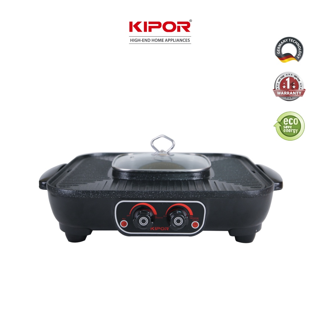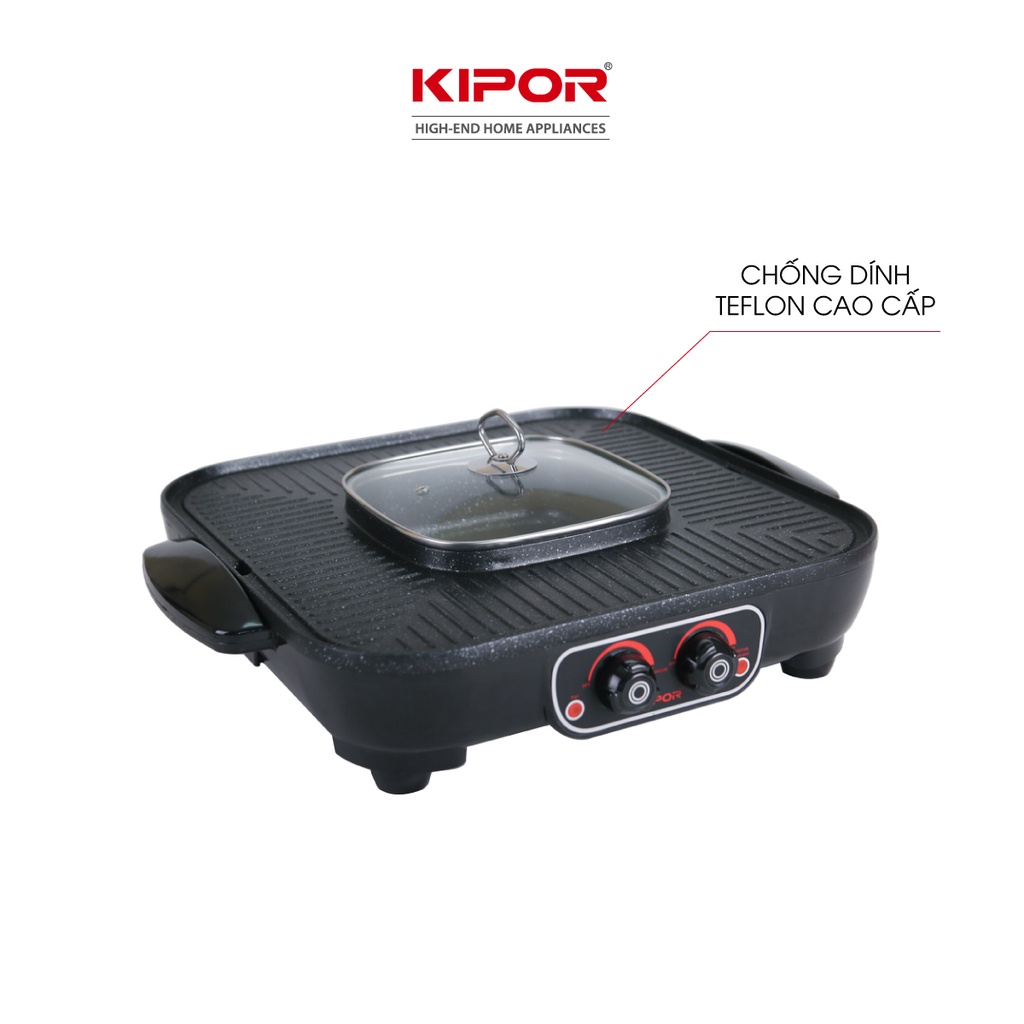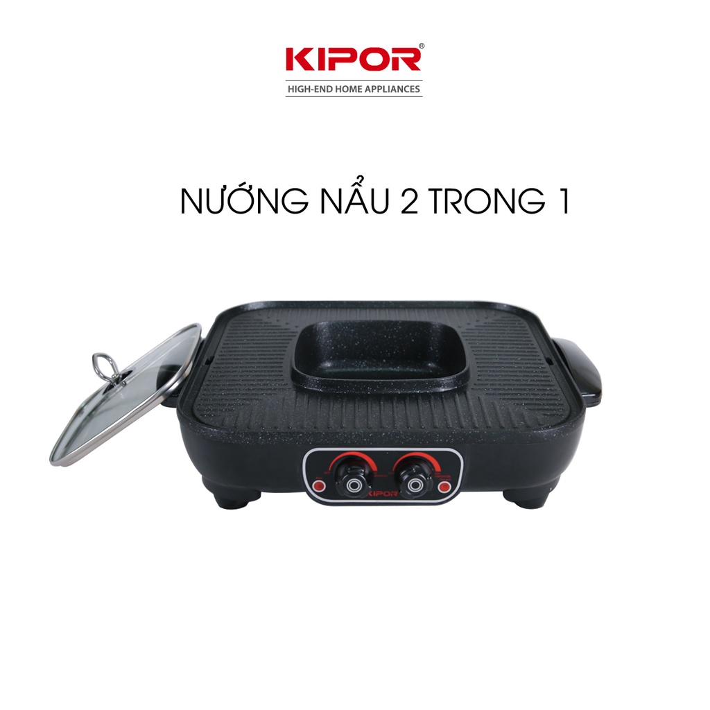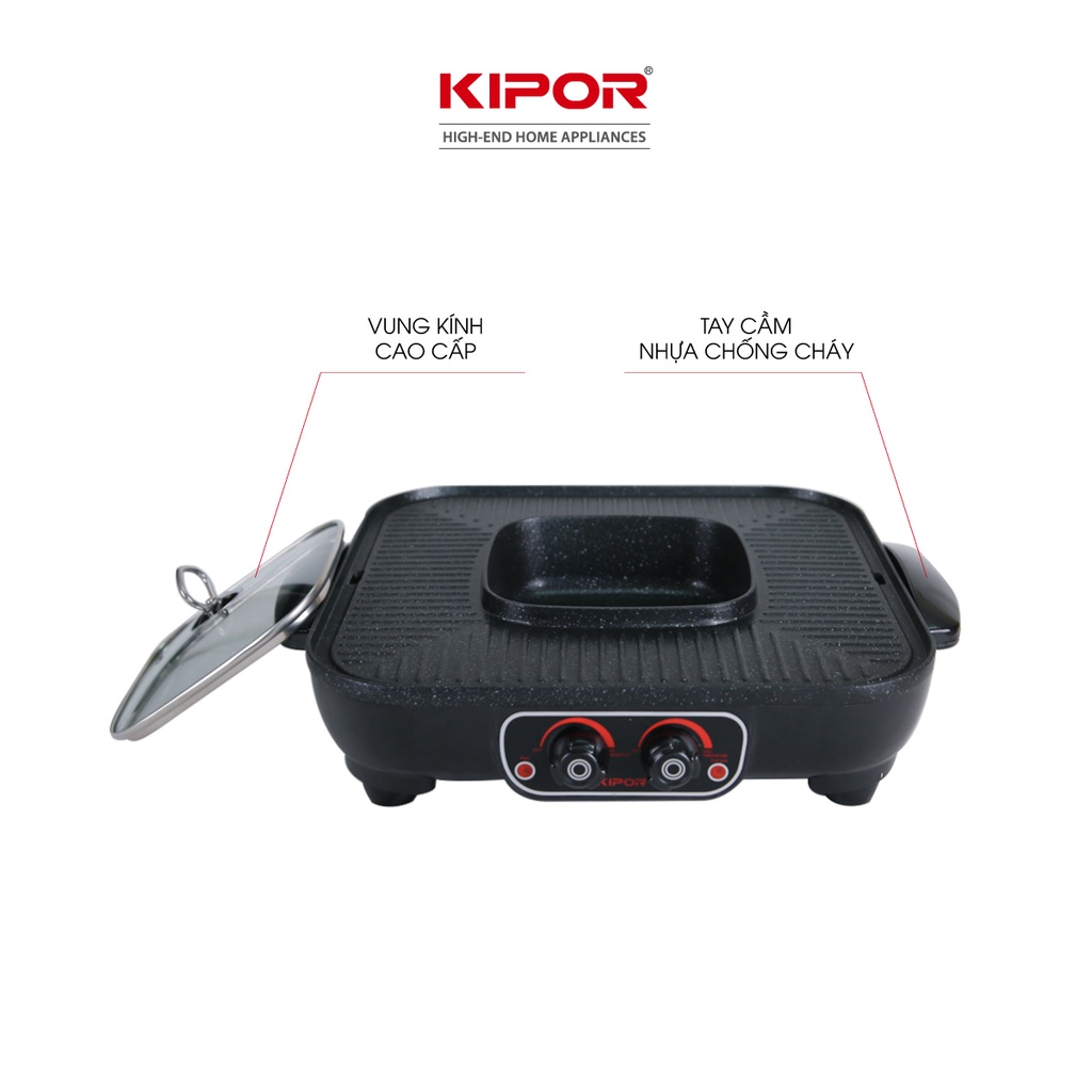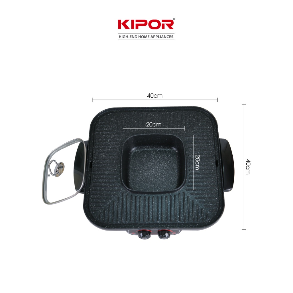 Bếp lẩu nướng điện không khói KIPOR KP-HG4020-Lẩu, nướng đồng thời điều chỉnh nhiệt độc lập-Bảo hành tại nhà 12 tháng