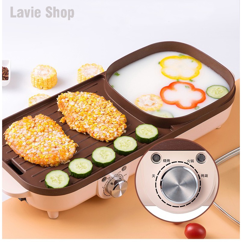Bếp Lẩu Nướng Điện Không Khói - Bếp Lẩu Nướng Đa Năng 2 Trong 1 Vừa Nướng Vừa Nấu Lẩu HB88