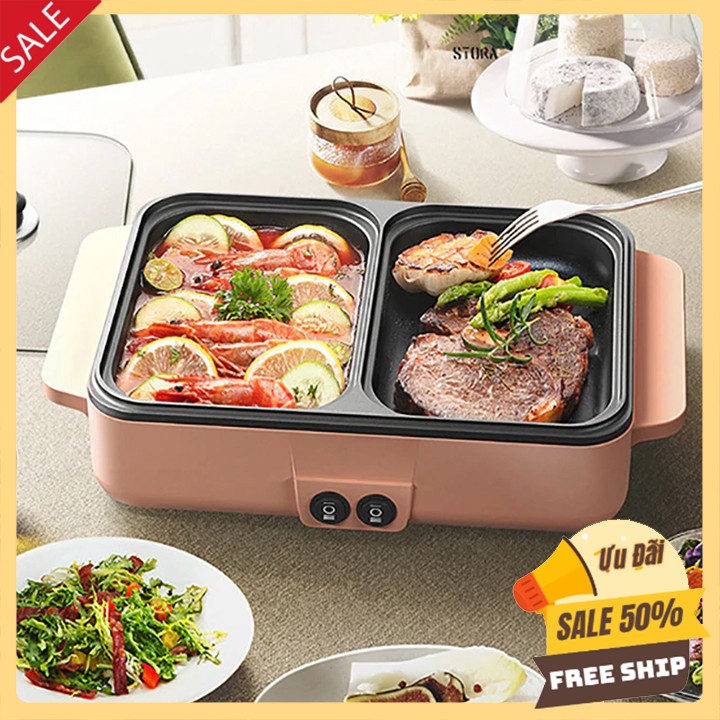 Nồi lẩu nướng điện mini 2 ngăn Chống Dính Đa Chức Năng mẫu mới nhất hiện nay