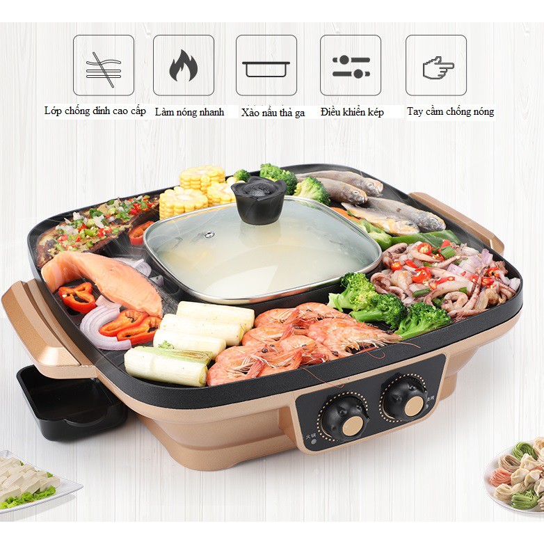 ⁃ Giờ đây bạn không chỉ có món nướng thơm ngon mà bạn còn sở hữu cho mình những món lẩu, chiên, xào thơm ngon mà không cần thay dụng cụ làm bếp. Bạn có thể cùng mọi người trò chuyện vui vẻ và cùng thưởng thức món ăn nóng hổi vào ngày cuối tuần.