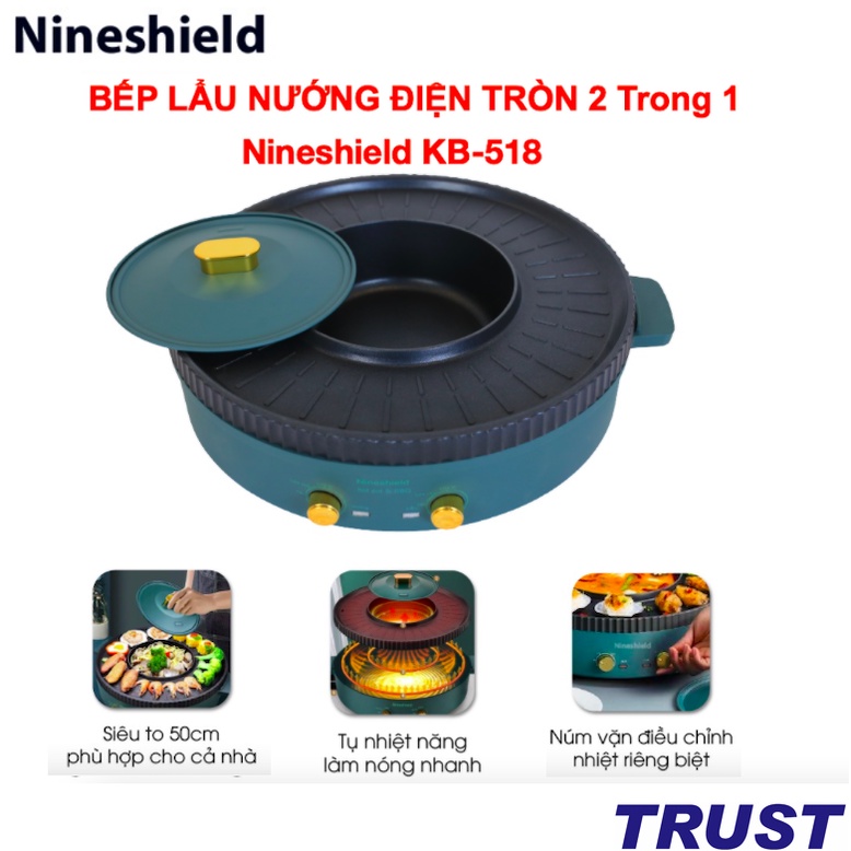 BẾP LẨU NƯỚNG ĐIỆN TRÒN 2 Trong 1 Nineshield KB-518 Loại To 51 Cm Công suất 2200WNồi Lẩu Nướng Đa Năng 2 Trong 1 Nineshield KB-518 Loại To 51 Cm