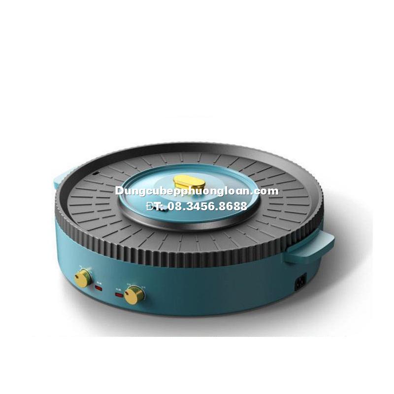 Bếp lẩu nướng điện tròn không khói, nồi lẩu nướng 2 trong 1 8625