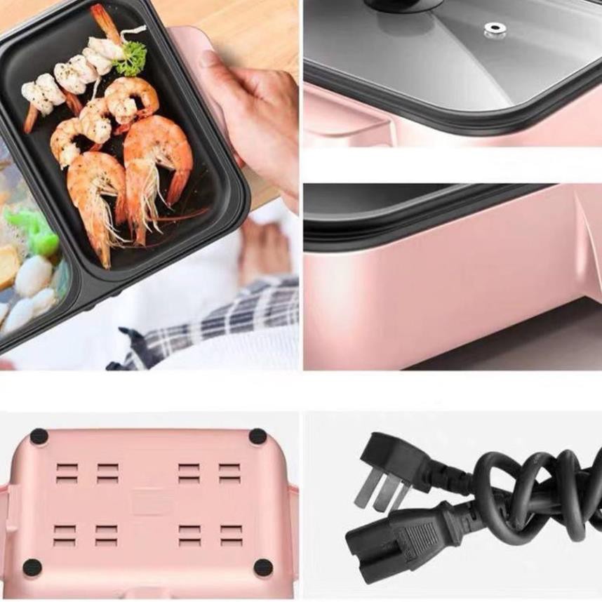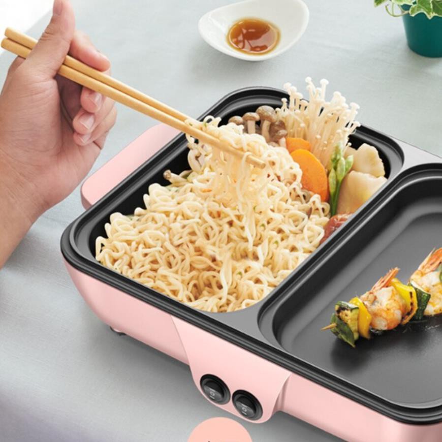 Bếp Lẩu Nướng Hàn Quốc 2 ngăn đa năng, Nồi Lẩu Nướng mini đa năng 2in1