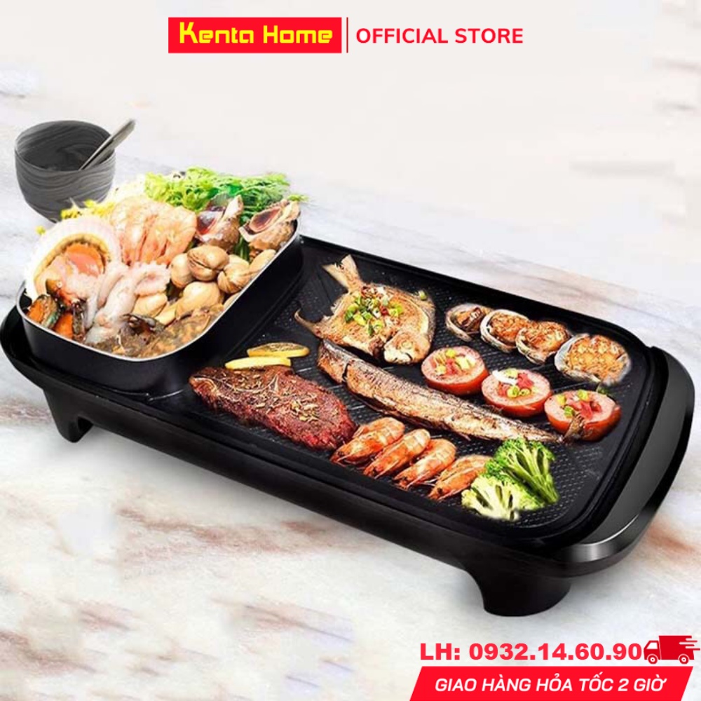 Bếp lẩu nướng kết hợp 2 in 1, Bếp lẩu nướng đa năng cao cấp có thể ăn lẩu nướng đồng thời dễ vệ sinh với men chống dính