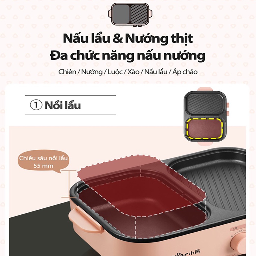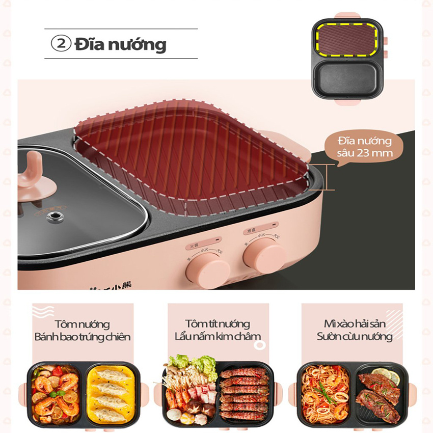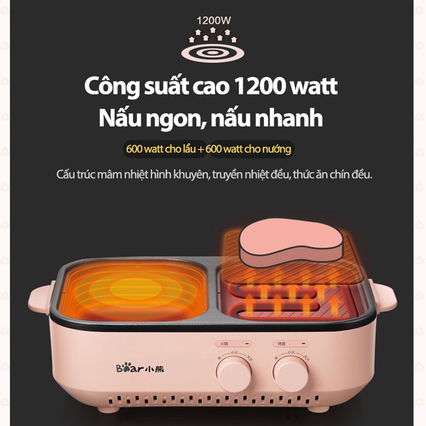 📣 Bếp lẩu nướng mini 2 ngăn Bear DKL-C12D1 dung tích 1500ml