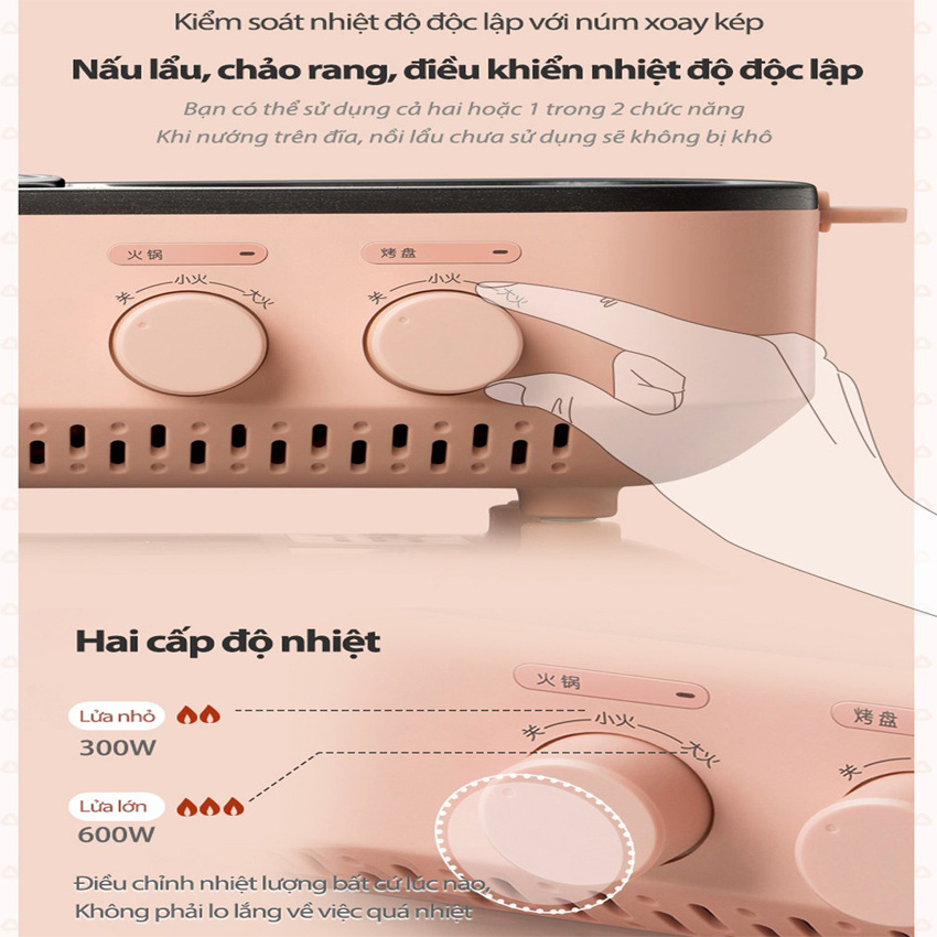 ✔ Công suất: 1200W (ngăn lẩu 600W, ngăn nướng 600W)