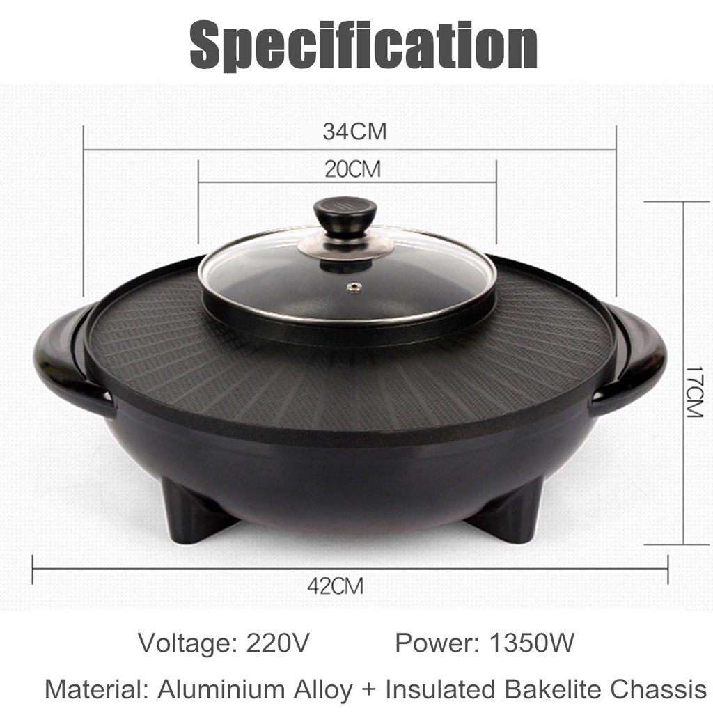 Giới thiệu [Mã ELHADEV giảm 4% đơn 300K] Bếp Lẩu Nướng Tròn Đen Điện Đa Năng 2 In 1 Nội Địa Trung