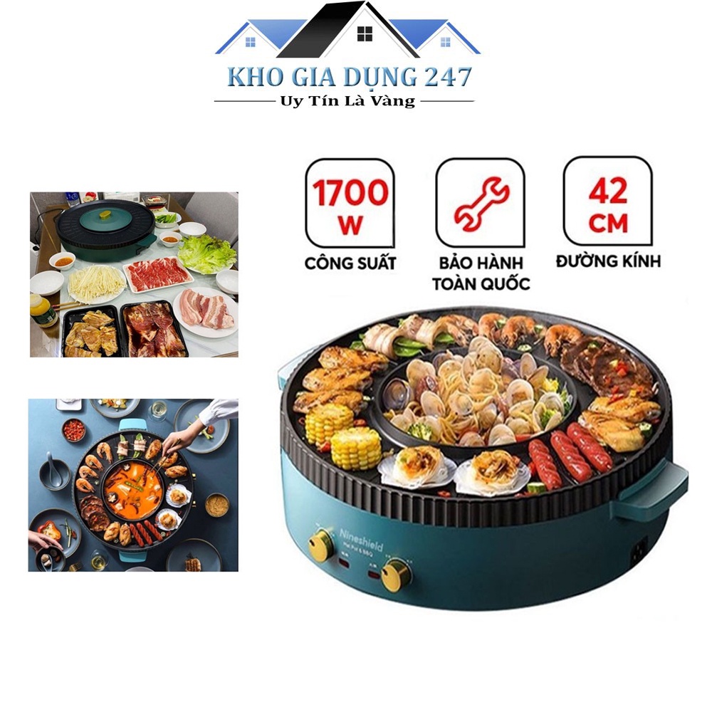 Thiết Bị Điện Gia Dụng > Đồ gia dụng nhà bếp > Nồi nấu đa năng || Bếp Lẩu Nướng Tròn NINESHIELD - Không Khói 2 Trong 1 Kết Hợp Nướng Lẩu Siêu Tiện LợiCòn hàng