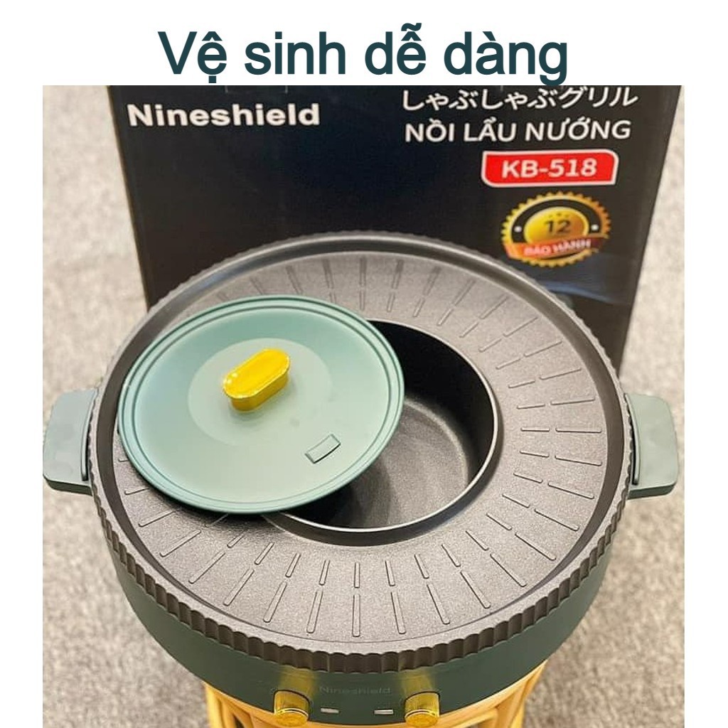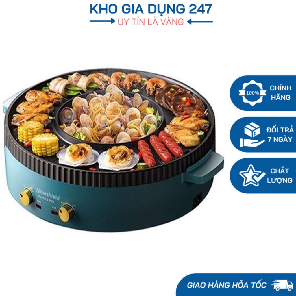 Bếp Lẩu Nướng Tròn NINESHIELD - Không Khói 2 Trong 1 Kết Hợp Nướng Lẩu Siêu Tiện Lợi