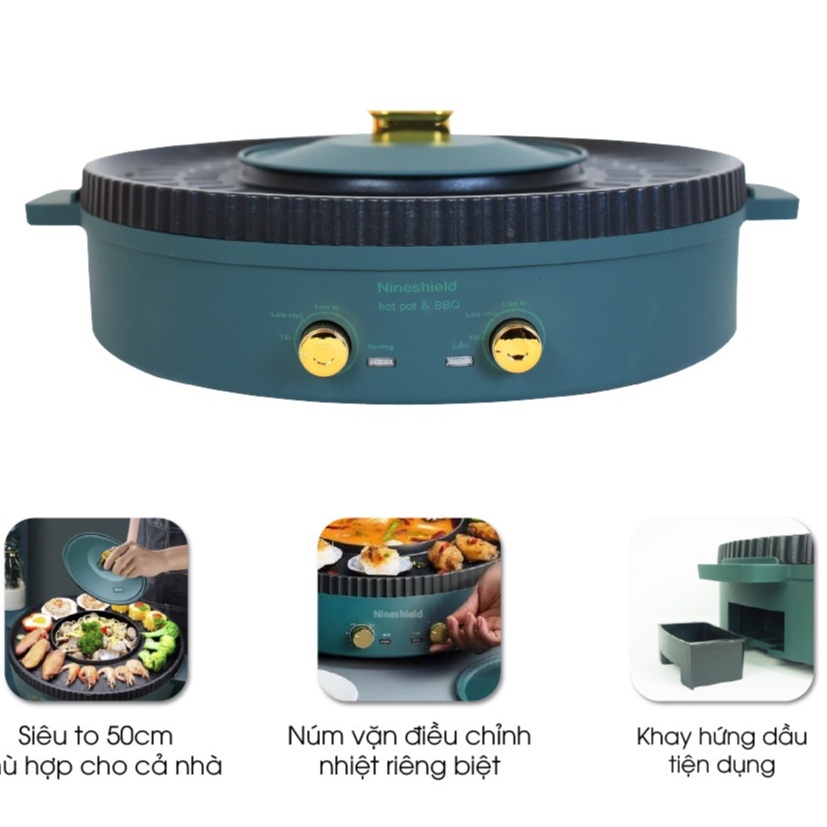 Bếp lẩu và nướng trong Nineshield Kb-518 tích hợp 2 chức năng kiểu dáng tròn độc đáo sang trọng- Tên hàng hóa: Bếp lẩu và nướng trong Nineshield Kb-518