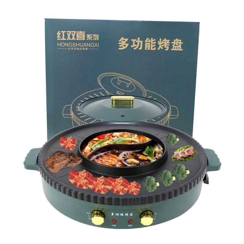 BẾP - NỒI LẨU NƯỚNG 2 IN 1 TRÒN XANH - NỒI LẨU VÀ NƯỚNG BẰNG ĐIỆN ĐA NĂNG
