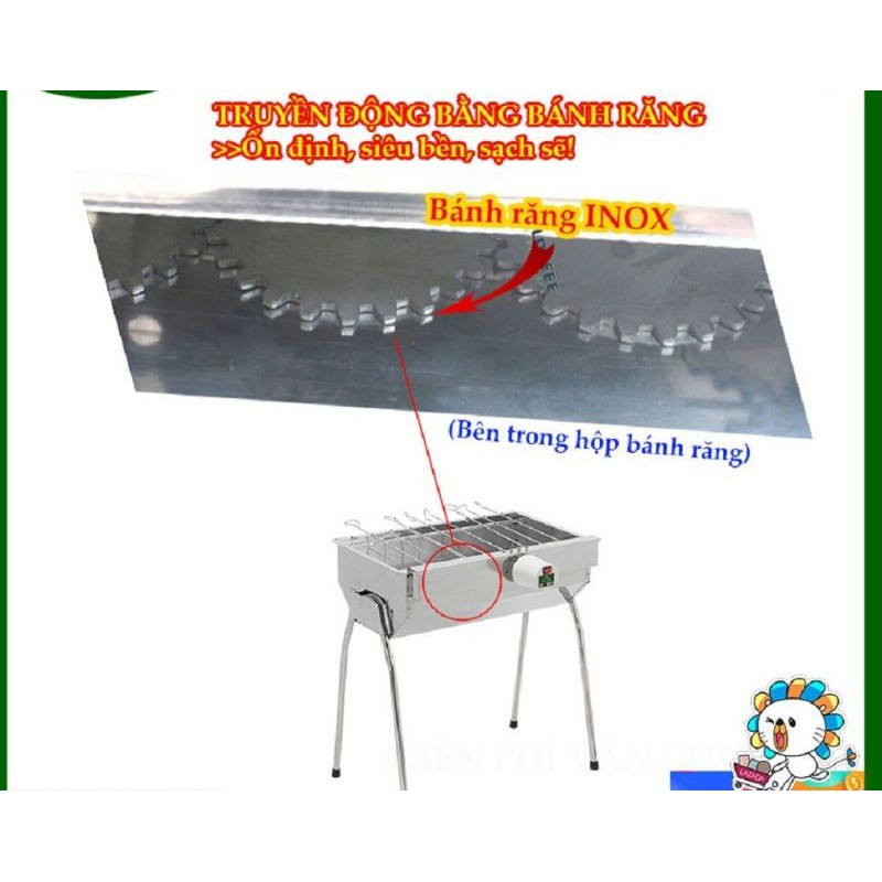 Bếp nướng BBQ inox cao cấp tự xoay kèm moto, kt 49*34*55cm