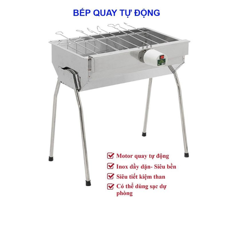 Giới thiệu Bếp nướng BBQ inox cao cấp tự xoay kèm moto, kt 49*34*55cm