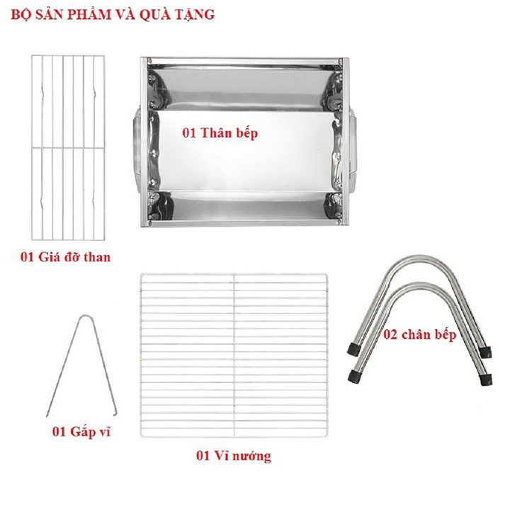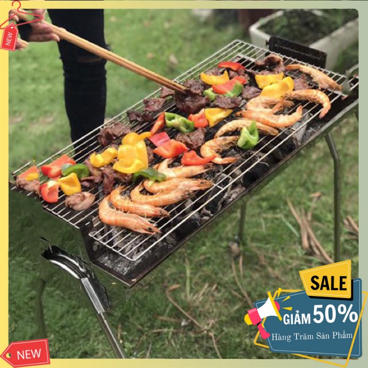 Bếp nướng BBQ ngoài trời dã ngoại nướng than hoa inox gấp gọn chân cao