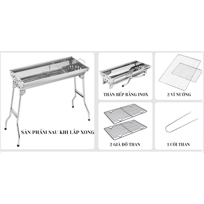 Bếp nướng BBQ ngoài trời dã ngoại nướng than hoa inox có thể gấp gọn chân cao xếp kèm phụ kiệnThông tin sản phẩm