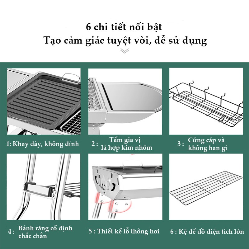 Giới thiệu Bếp nướng BBQ ngoài trời dã ngoại nướng than hoa inox có thể gấp gọn chân cao xếp kèm phụ kiện