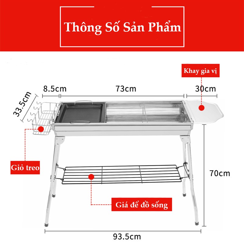 Bếp Nướng Than Hoa BBQ Dã Ngoại Ngoài Trời Gấp Gọn Chất Liệu Inox Kèm Phụ KiệnTHÔNG TIN SẢN PHẨM