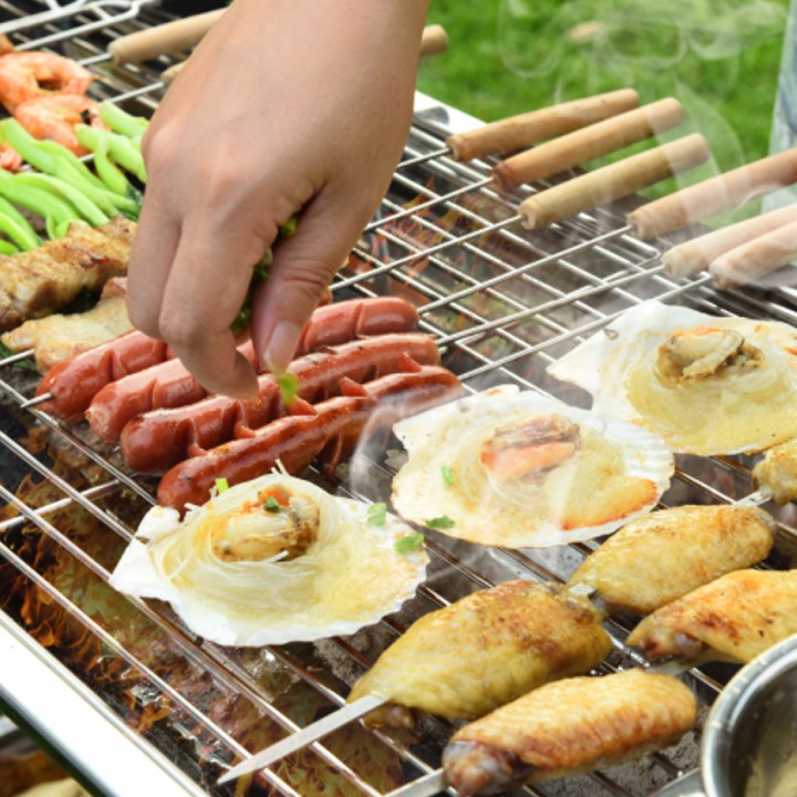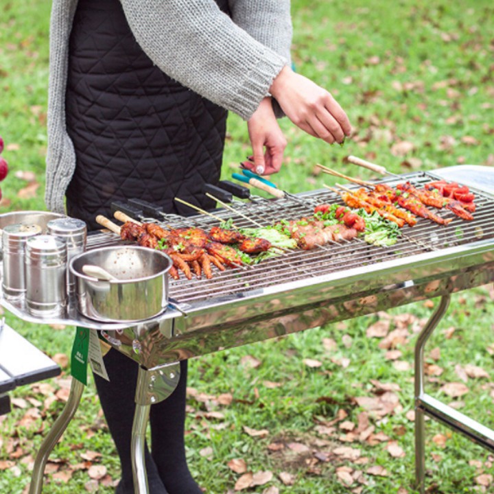 Bếp nướng BQQ ngoài trời nướng than hoa kèm 7 phụ kiện bếp nướng dã ngoại có thể gấp gọn hàng đẹp loại 1-Chất liệu: Inox cao cấp