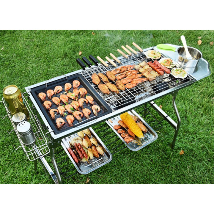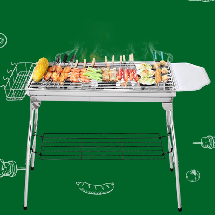 Bếp nướng BQQ than inox ngoài trời 1 bếp và 7 món phụ kiện tặng kèm chân cao tiện dụng ( y hình)