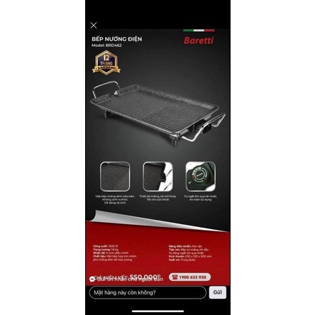 Nhà cửa & Đời sống > Dụng cụ nhà bếp > Lò nướng & phụ kiện || Bếp nướng điện BarettiCòn hàng