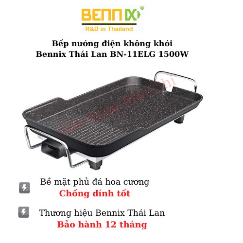 Bếp nướng điện Benix, Vỉ nướng điện không khói Bennix Thái Lan BN-11ELG 1500W Không tạo khói an toàn siêu ngonModel: BN-11ELG