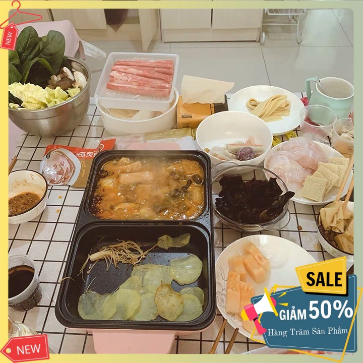 Nồi lẩu nướng điện mini 2 ngăn Chống Dính Đa Chức Năng mẫu mới nhất hiện nay