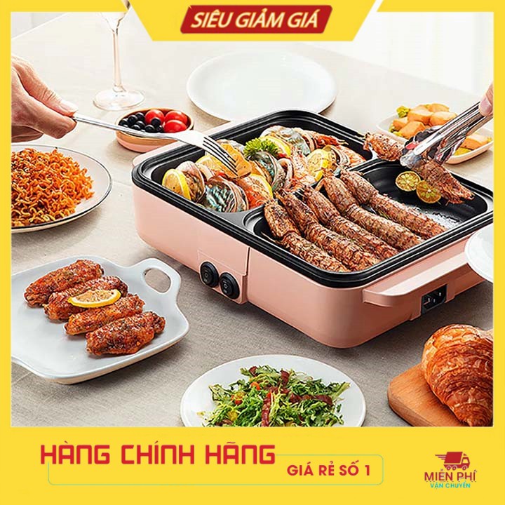Nồi lẩu nướng điện mini 2 ngăn Chống Dính Đa Chức Năng mẫu mới nhất hiện nay