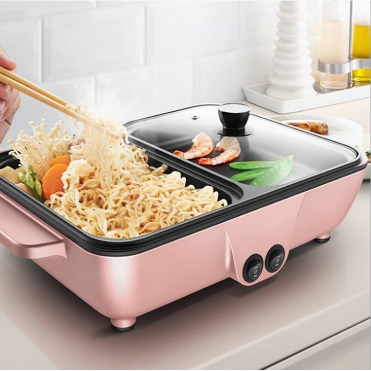 Bếp nướng điện đa năng 2 trong 1, nồi lẩu nướng hàn quốc, chảo lẩu thông minh 2 ngăn chống dính dành cho cả gia đình