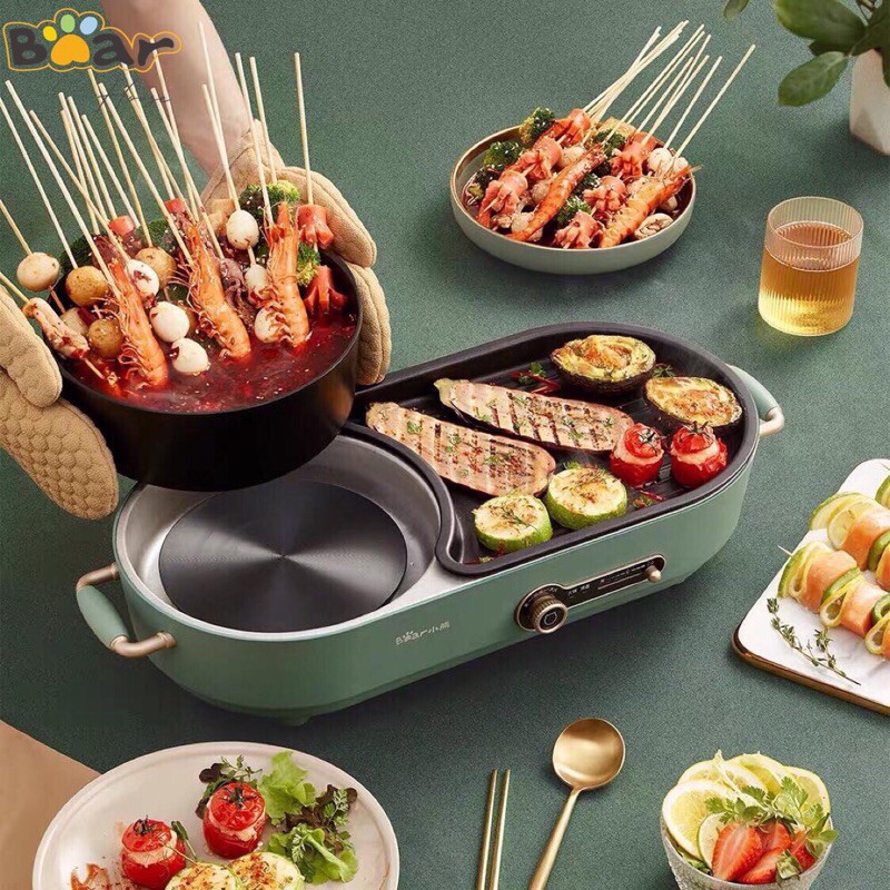 Bếp lẩu nướng BEAR đa năng 2IN1 cho gia đình DKL-C15G1*LƯU Ý: Sản phẩm ổ cắm 3 chân, quý khách vui lòng mua ổ cắm chuyển đổi 3 chân sang 2 chân nhé