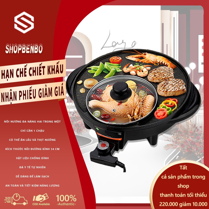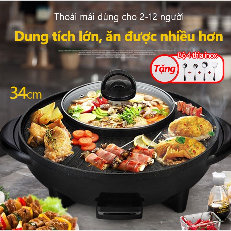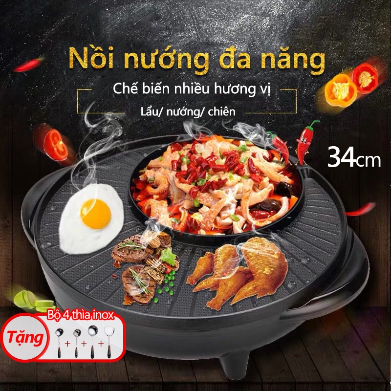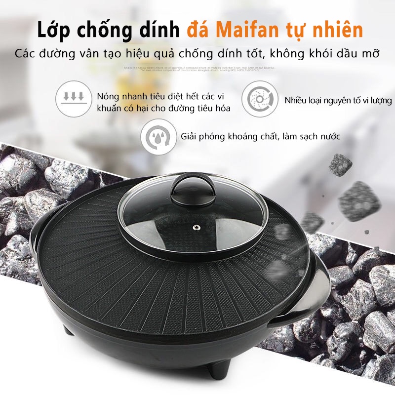 Bếp nướng điện gia dụng đa năng Chảo nướng BBQ điện Hàn Quốc điện không khói HM3234