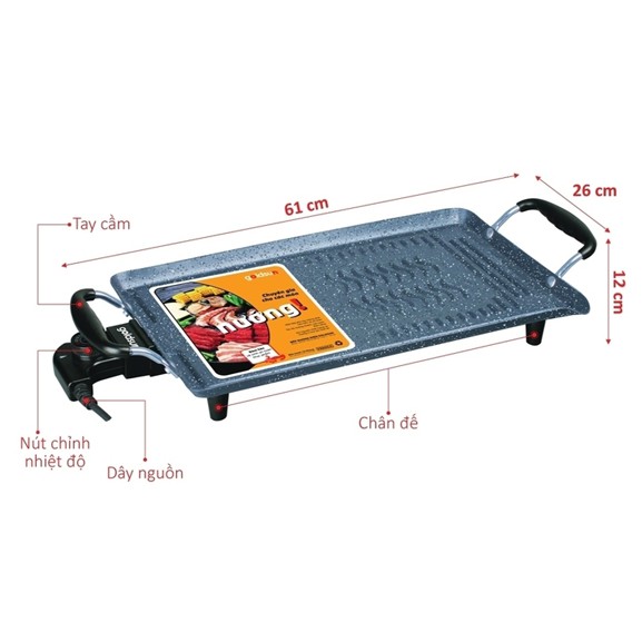 • Kích thước mặt nướng: 46x28cm