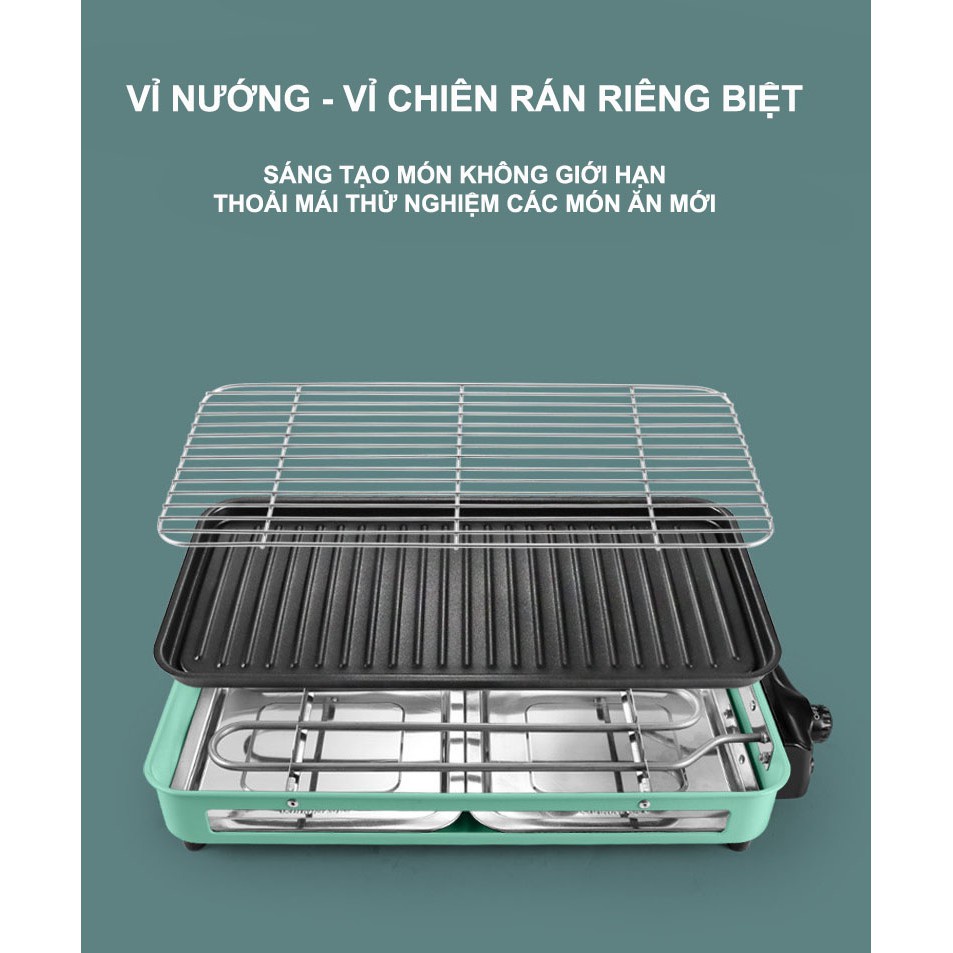 Bếp nướng điện không khói (có vỉ nướng và khay nướng) tiết kiệm điện năng, chống dính dễ dàng vệ sinh