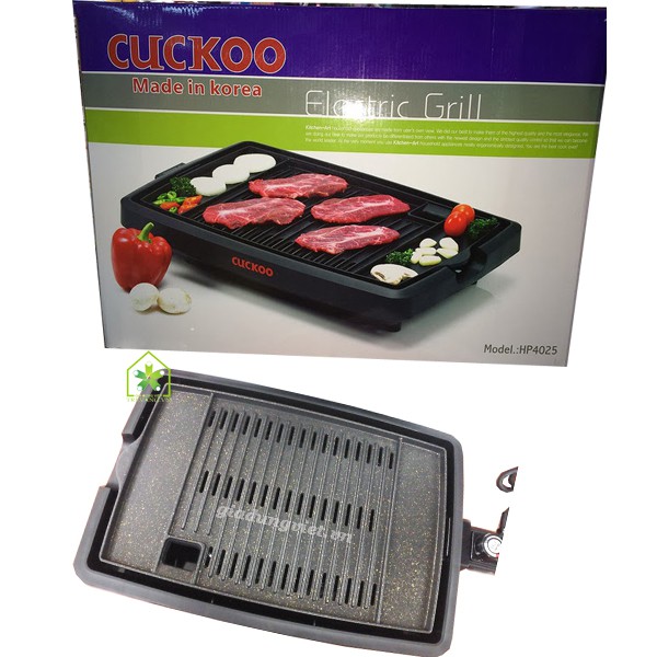 Bếp nướng điện không khói Cuckoo HP 4025 thiết kế đơn giản, dễ sử dụng, chống dính cao cấpBếp nướng điện không khói Cuckoo HP 4025 thiết kế đơn giản, thuận tiện khi sử dụng. Sinh nhiệt bằng sợi đốt chống dính và nút điều khiển nhiệt độ, bạn sẽ dễ dàng kiểm soát nhiệt độ và độ chín của thức ăn. Bề mặt nướng rộng, thiết kế mặt bếp nướng kết hợp hai mặt nhẵn và mặt dạng sóng cùng lớp chống dính siêu bền sẽ giúp thức ăn không dính vào khay và dễ dàng hơn khi vệ sinh. Cuckoo HP4025 không sinh ra khói, kích thước nhỏ gọn, là dụng cụ thay thế lò nướng truyền thống một cách hiệu quả.