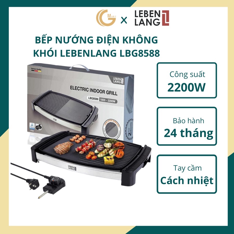 Bếp nướng điện không khói Lebenlang của Đức/ Bếp lẩu nướng đa năng công suất 2200W bảo hành chính hãng 2 năm LBG8588