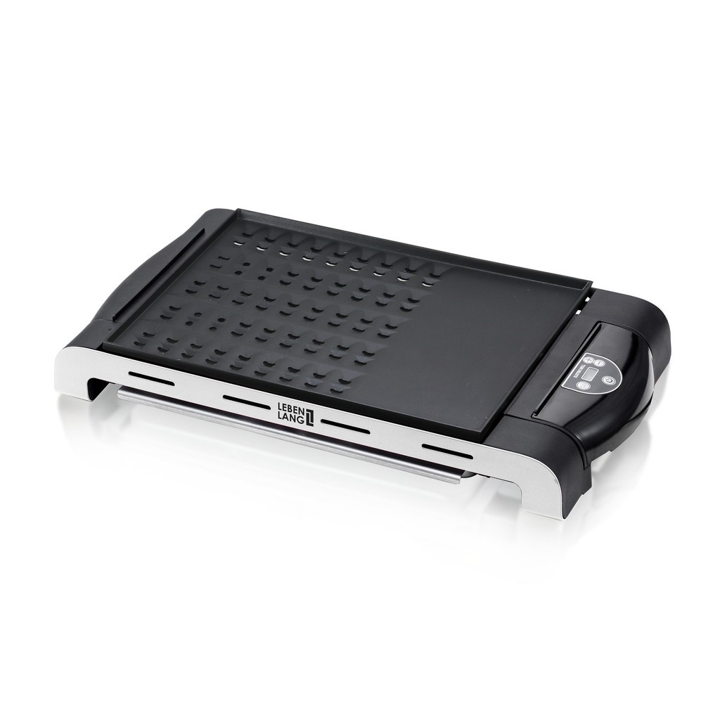 Bếp nướng điện không khói Lebenlang sở hữu viền mặt trước và mặt sau được làm bằng thép không gỉ, hai bên tay cầm được làm bằng nhựa chống nóng hiệu quả, đảm bảo an toàn khi sử dụng. Bếp nướng được phủ lớp chống dính chất lượng cao của Đức, không có chứa chất độc hại PFOA, dễ dàng vệ sinh