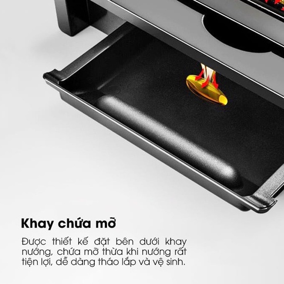 Với công suất hoạt động là 1500W cùng tính năng điều chỉnh nhiệt độ, bếp sẽ hỗ trợ nướng thực phẩm chín nhanh, tiết kệm điện, hạn chế bắn dầu mỡ.