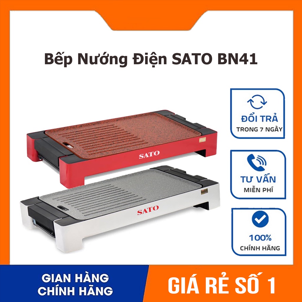 Bếp Nướng Điện Không Khói SATO BN41 Hợp Kim Nhôm Đúc Nguyên Khối Phủ Chống Dính Cao Cấp, Bảo Hành Chính Hãng 36 Tháng