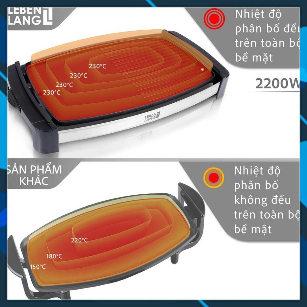 Bếp nướng điện không khói , vỉ nướng Lebenlang của Đức, công suất 2200W, hàng chính hãng BH 2 năm- Công suất 1800-2200W