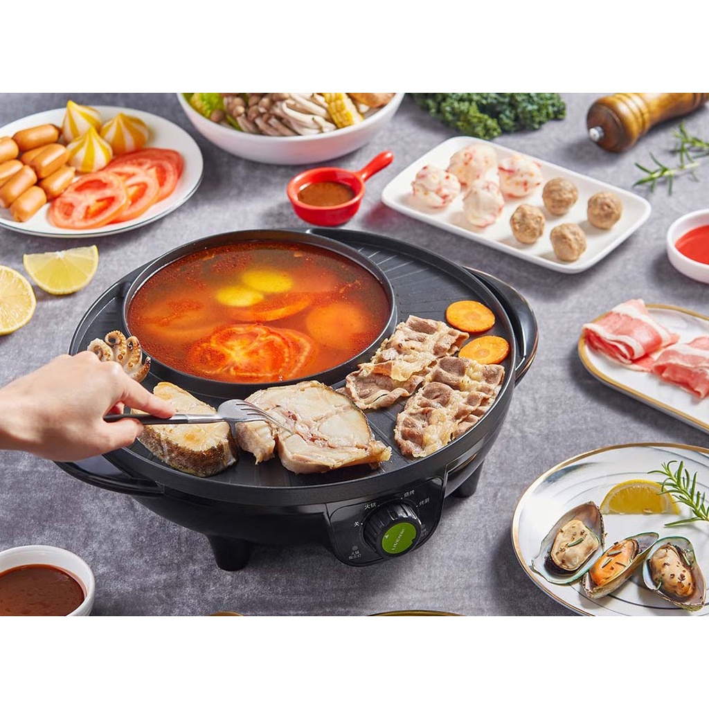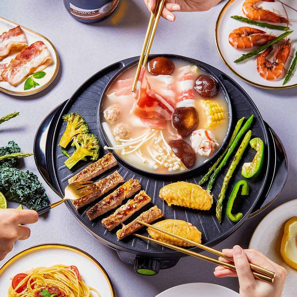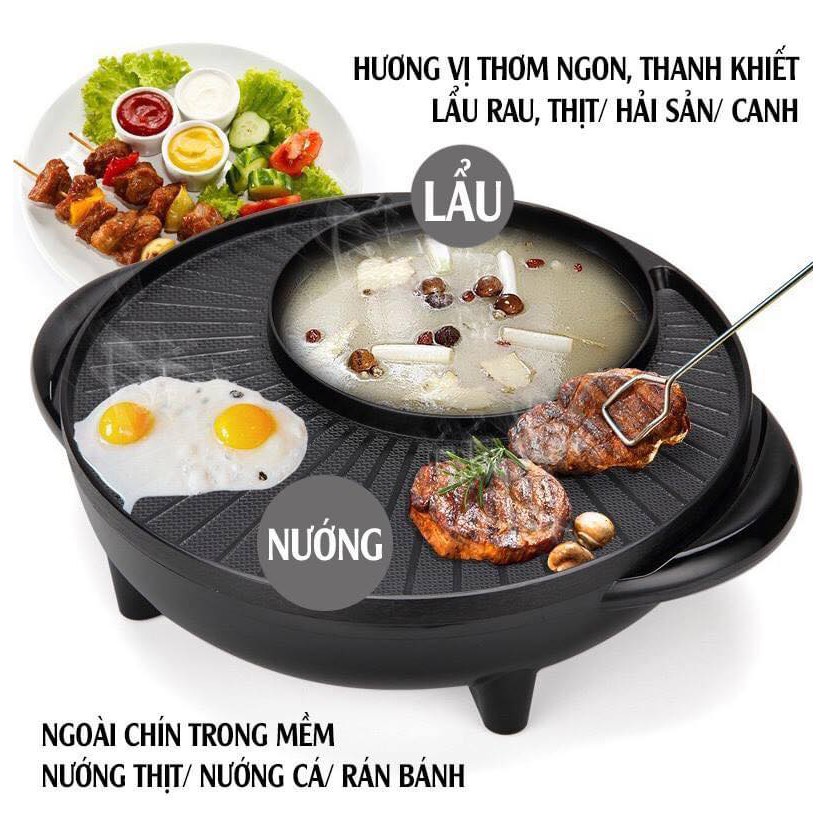 - Nồi Lẩu Nướng Điện 2 ngăn là sự kết hợp hoàn hảo giữa bếp nướng và bếp lẩu vô cùng tiện dụng. Với Bếp Lẩu Nướng Tròn, người sử dụng có thể vừa nướng nhiều loại thức ăn và đồng thời nấu lẩu cùng một lúc.