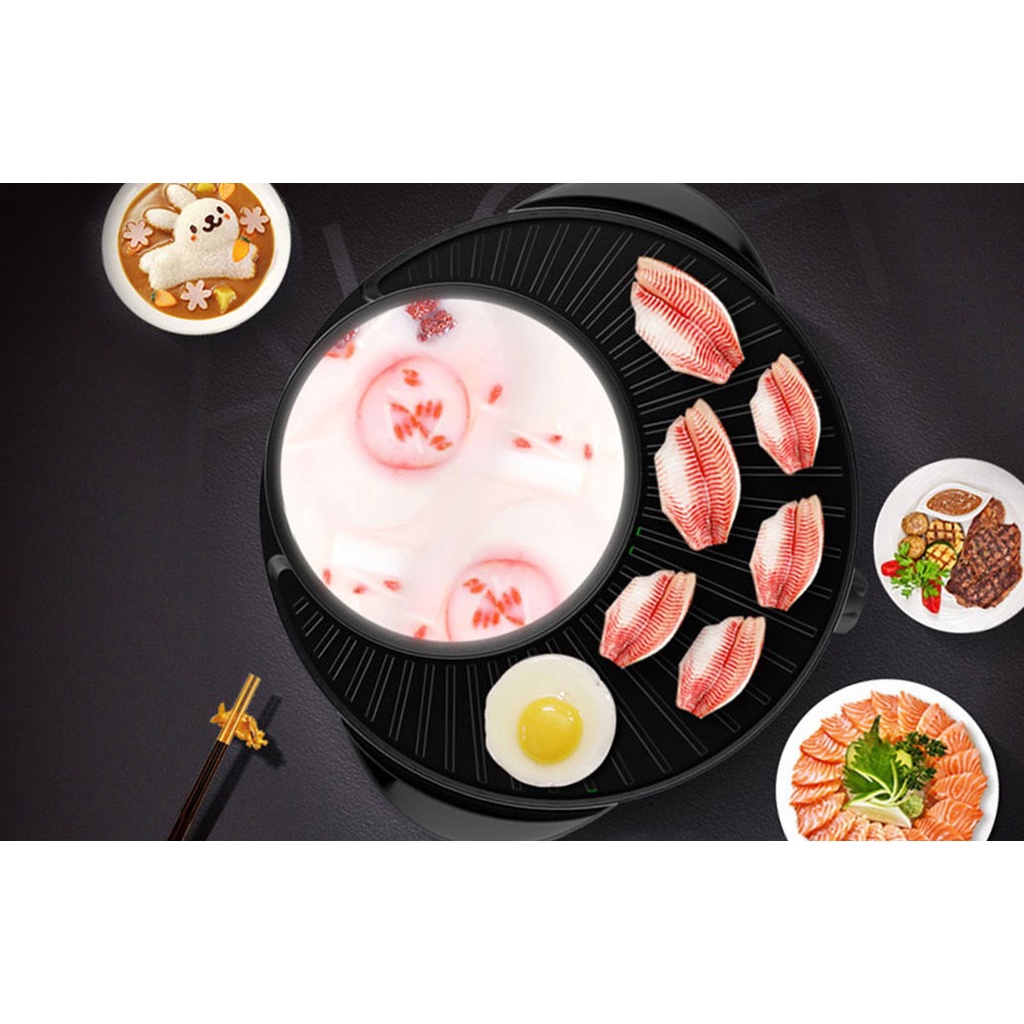 Bếp nướng điện, bếp lẩu nướng, lớp chống dính mặt đá hoa cương Có khả năng chịu nhiệt và dẫn nhiệt tốt tiết kiệm điệnLẩu nướng 2 in 1