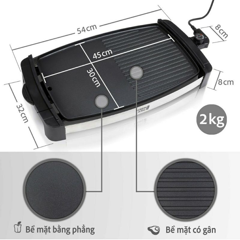 Viền mặt trước và mặt sau được làm bằng thép không gỉ, hai bên tay cầm được làm bằng nhựa chống nóng hiệu quả, đảm bảo an toàn khi sử dụng . Vỉ nướng được phủ lớp chống dính chất lượng cao nhập khẩu từ Nhật Bản, không có chứa chất độc hại PFOA, tiết kiệm thời gian khi chùi rửa.