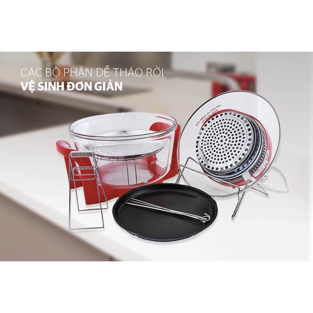 - Nồi nướng bằng thủy tinh chịu nhiệt, có thể tháo rời, vệ sinh dễ dàng.