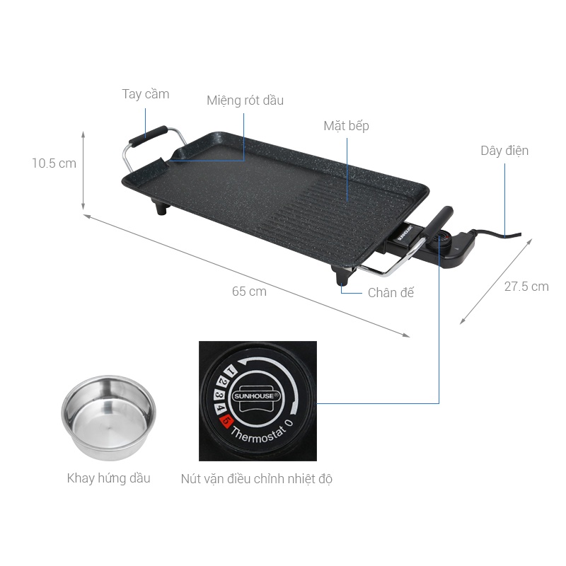 Thương hiệu: Sunhouse | Xem thêm các sản phẩm Vỉ nướng điện của SunhouseMô tả ngắn