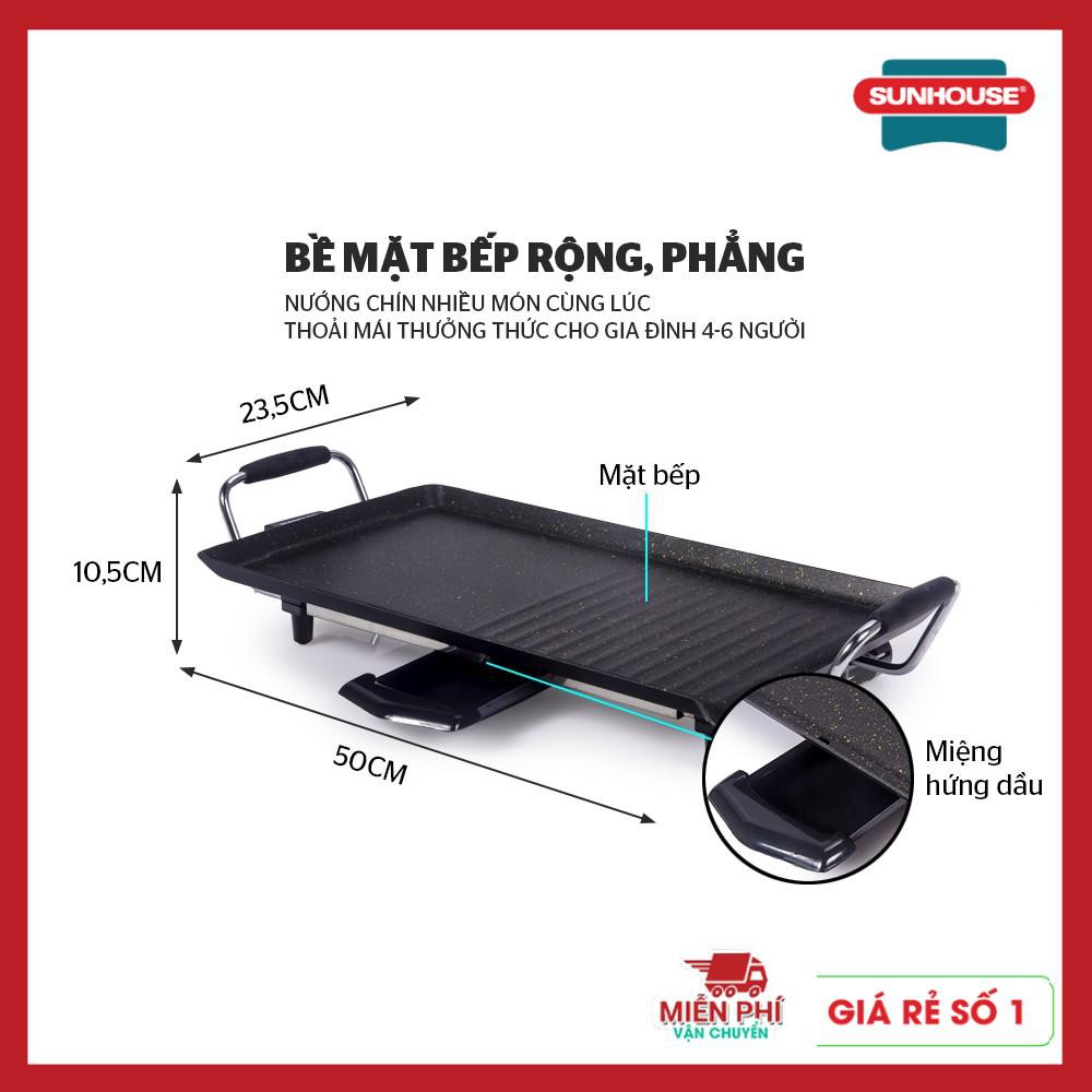- Bếp nướng điện SUNHOUSE SHD4600 là sản phẩm bếp nướng hiện đại, tiện dụng sử dụng điện năng để nấu thực phẩm, bề mặt bếp được phủ lớp chống dính đá hoa cương truyền nhiệt nhanh hơn, giữ nhiệt lâu hơn. Bếp nhiều chức năng như: nướng, chiên, xào, rán bạn có thể thảo sức để sáng tạo món ăn. Hoạt động với công suất 1600W nướng thực phẩm nhanh hơn, thiết kế hình chữ nhật có thể nấu được nhiều thức ăn hơn.