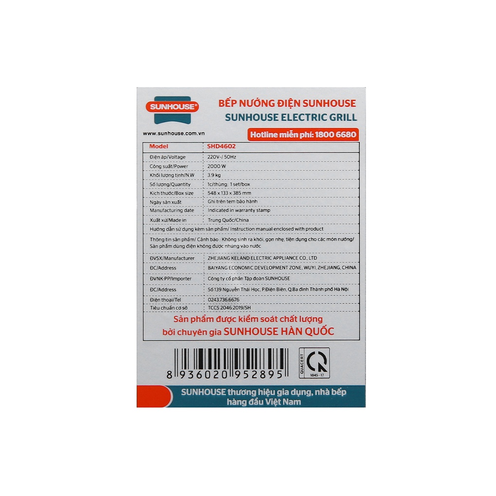 Giới thiệu [Mã ELHADEV giảm 4% đơn 300K] Bếp nướng điện Sunhouse SHD4602