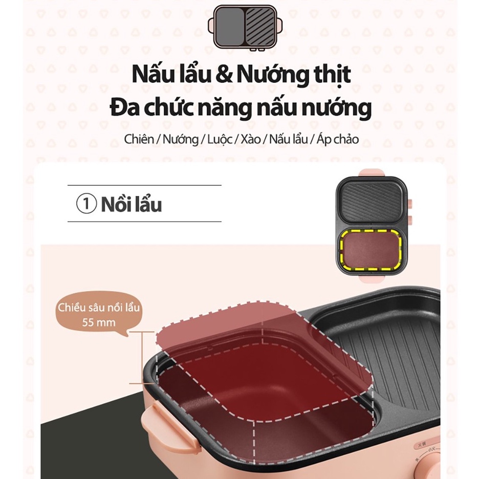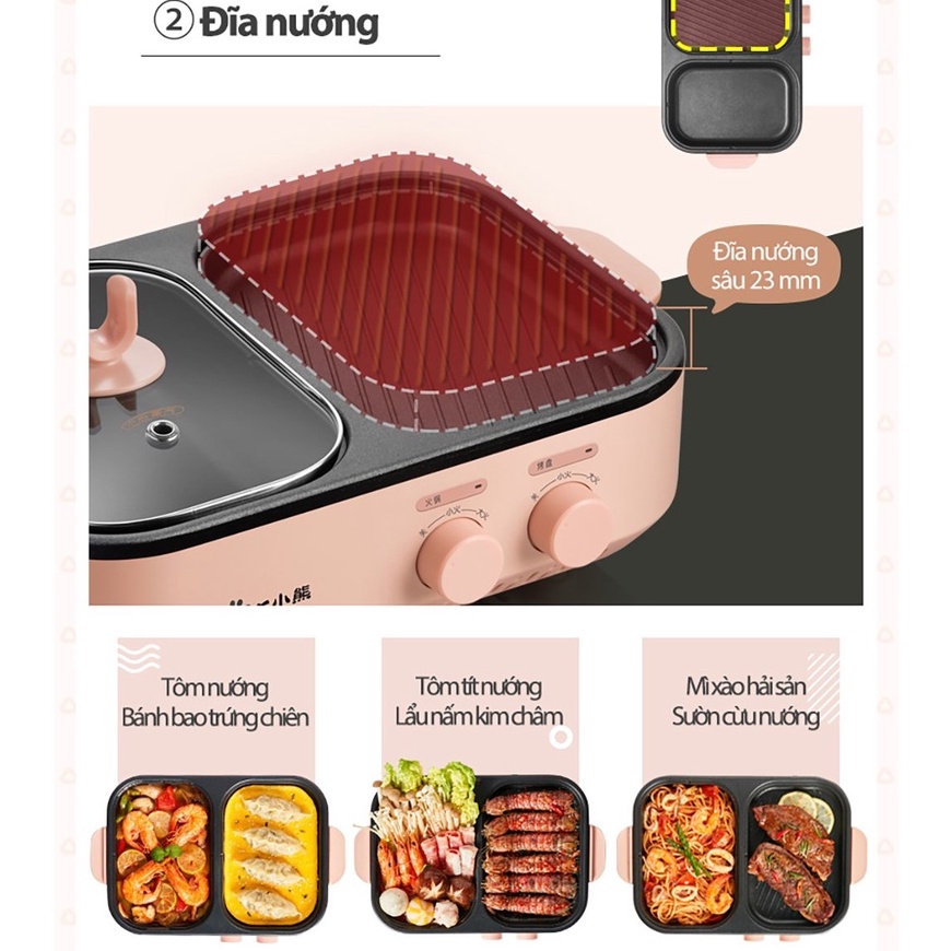 Giới thiệu Bếp Nướng Điện Và Lẩu Mini Đa Năng Bear Chính Hãng DKL-C12D1 - BH 18 tháng