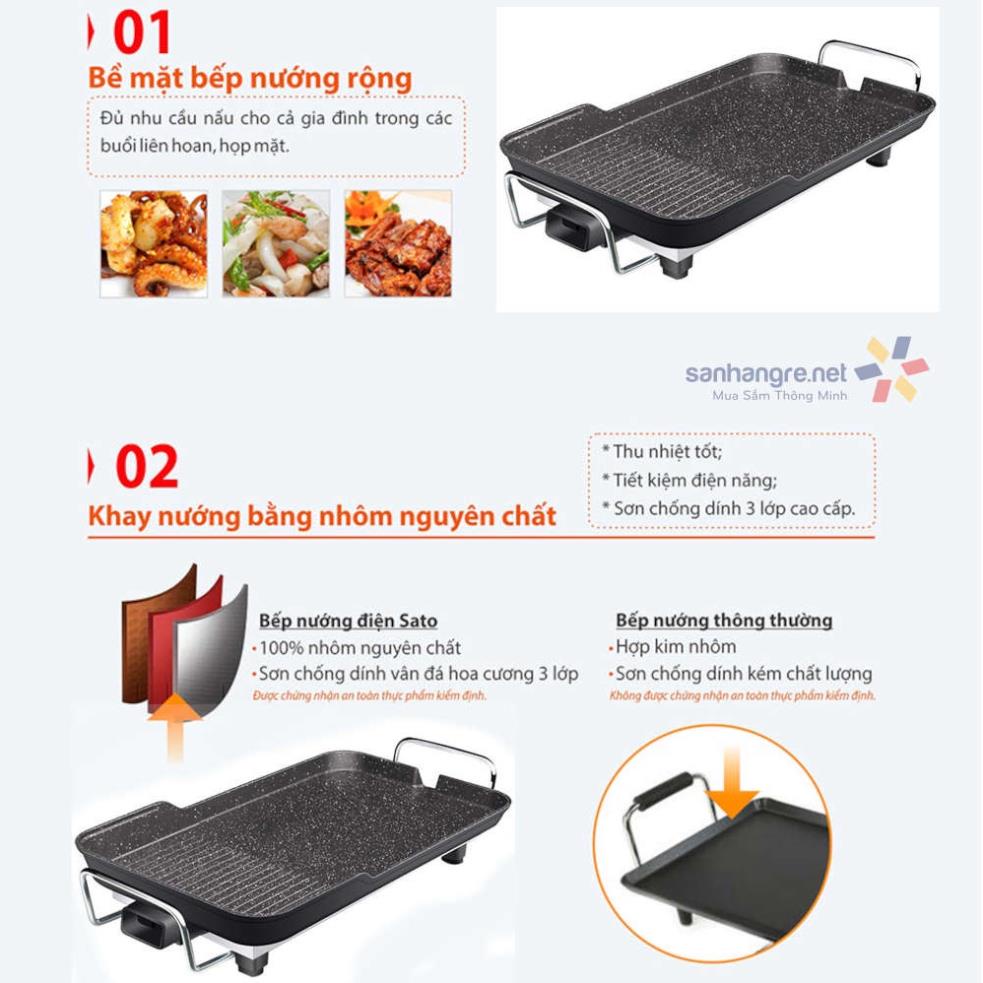 - Bếp nướng được đúc bằng nhôm nguyên chất 100% giúp giữ nhiệt lâu, tỏa nhiệt đều, tiết kiệm điện năng cho gia đình bạn